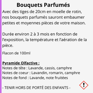 nos bouquets parfumés sauront embaumer petites etmoyennes pièces de votre maison.